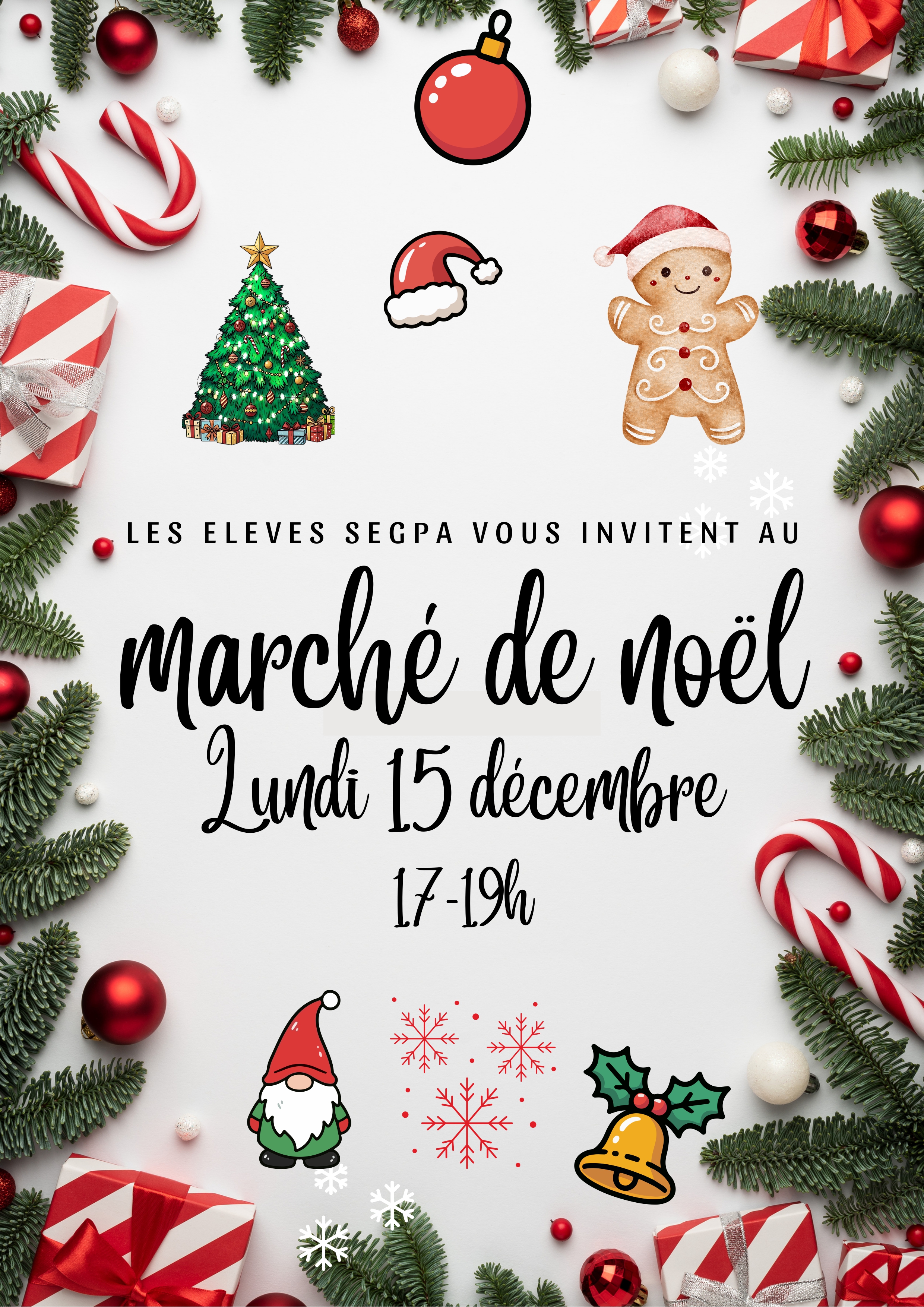 Lundi 15/12, à l'occasion des réunions parents-professeurs 5*, les élèves de SEGPA organise le marché de Noël.